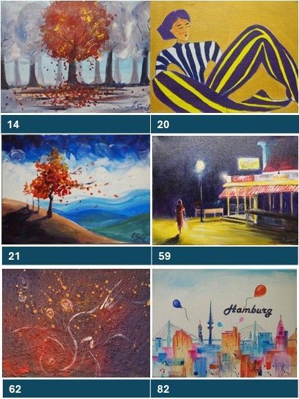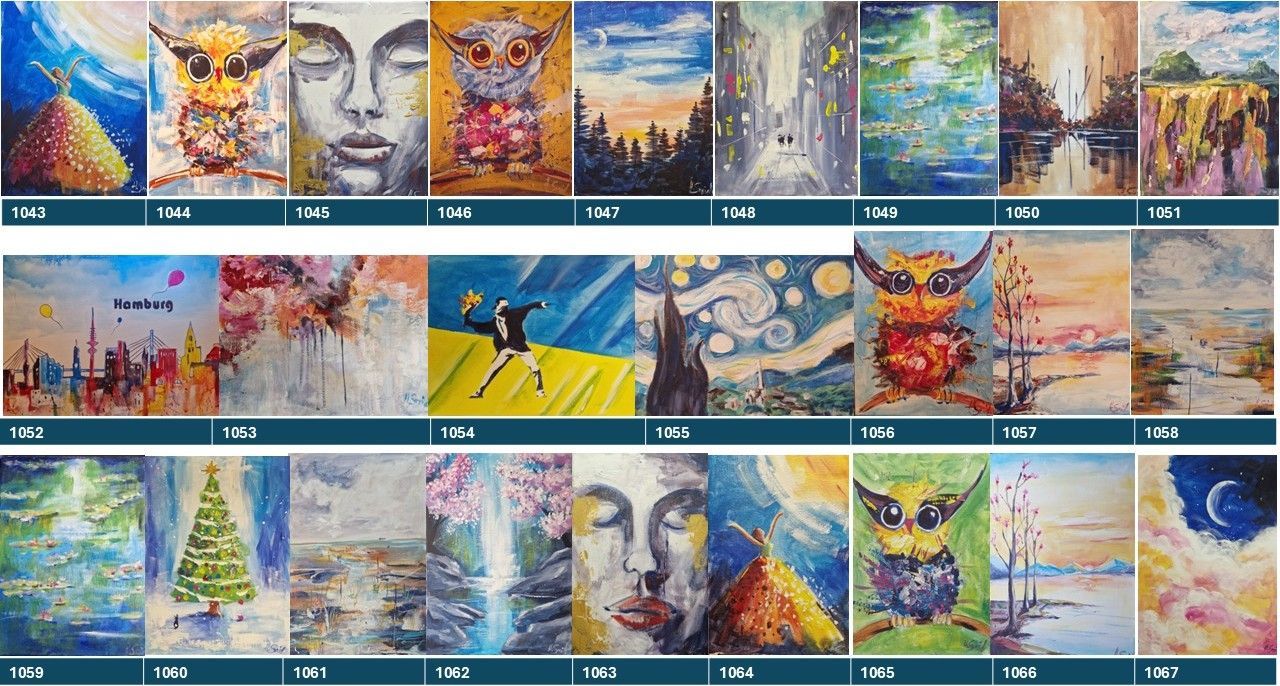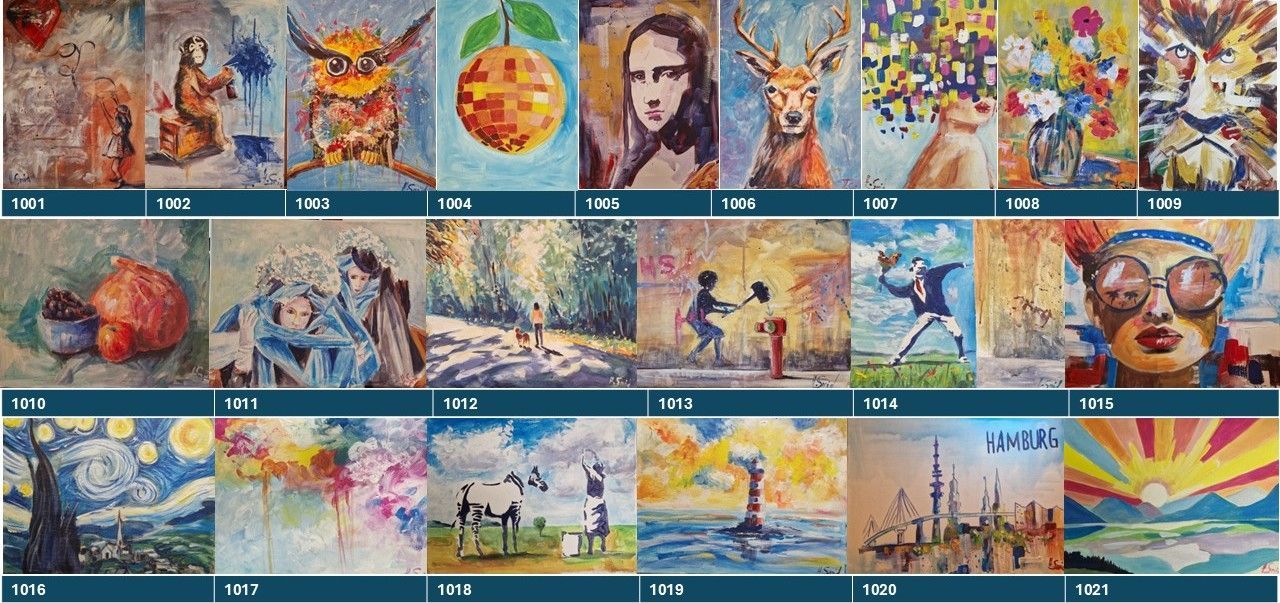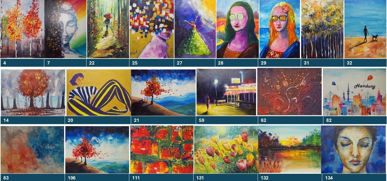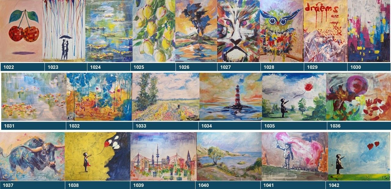 In den vergangenen Jahren habe ich – vor allem im Rahmen zahlreicher ArtNights (www.artnight.com) und eigener Kunstkurse – weit über 500 Bilder gemalt. Schon im letzten Jahr reifte daher der Entschluss, diese Werke gegen eine kleine Spende weiterzugeben.